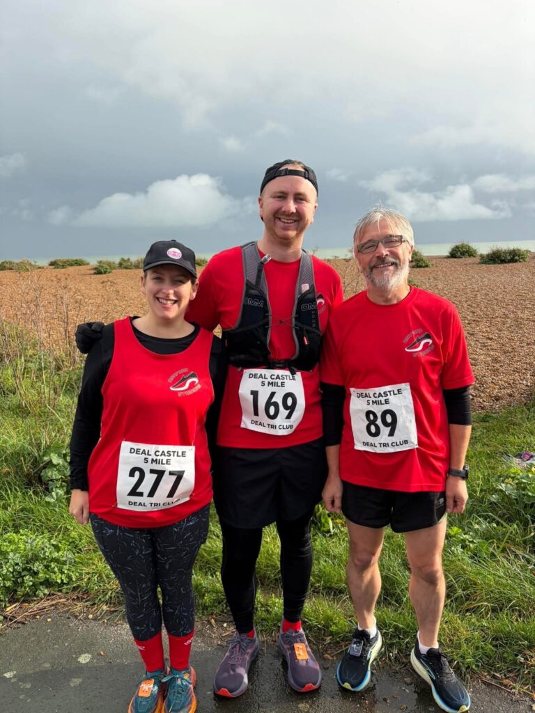 3 Striders took on the Deal Castle 5 mile race hosted by Deal Tri Club. Well worth checking out there other races as they are well organised and really reasonably priced too! The bad weather cleared ready for the start and it ended up being lovely! Adrian Green ran and supported a friend on today’s run finishing in 52.32 Isobel Phillips was completing her first race in over a year and her longest run since Grace was born she finished in a time of 52.13, we ran together and I was very proud of my wife today! A big thank you to Jayne, Amanda and Becky who made the journey over to Deal just to support which really helped for the final mile! They earnt a well deserved coffee after!