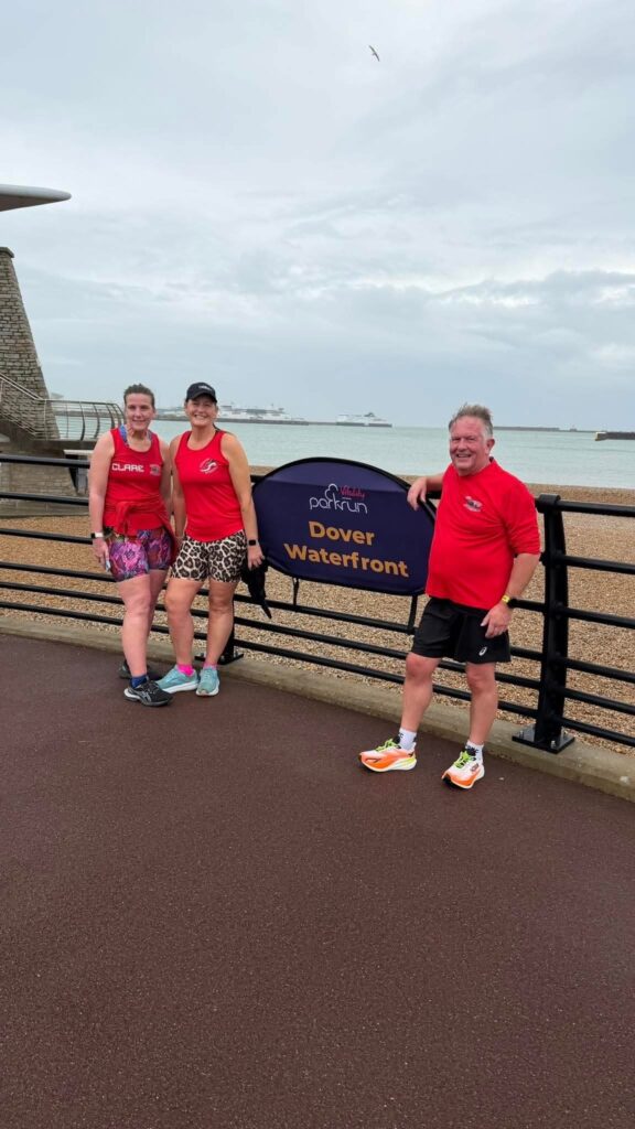 There was also a strong turnout at the Dover Waterfront parkrun. Simon Pharoah ran 22:09, with Justin Burden finishing in 27:07. Special congratulations go to Lee Standen, who not only ran a course PB of 29:03 but also celebrated his 250th parkrun milestone – a brilliant achievement. He was joined by Martin Whittingham in 39:22 and Laura Clark, who completed the course in 53:14.