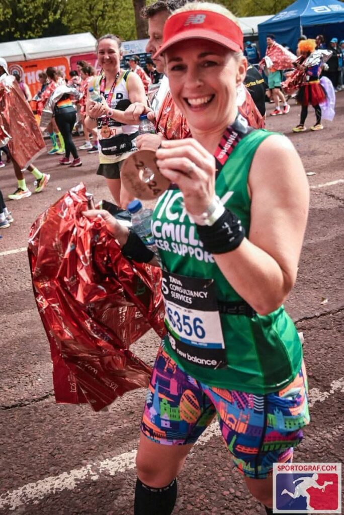 Completing my first marathon in 2019 in London.